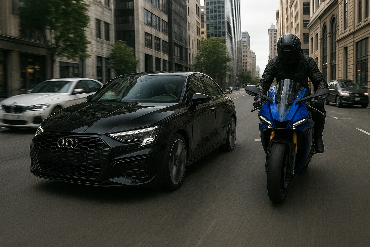 Auto und Motorrad auf Straße